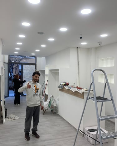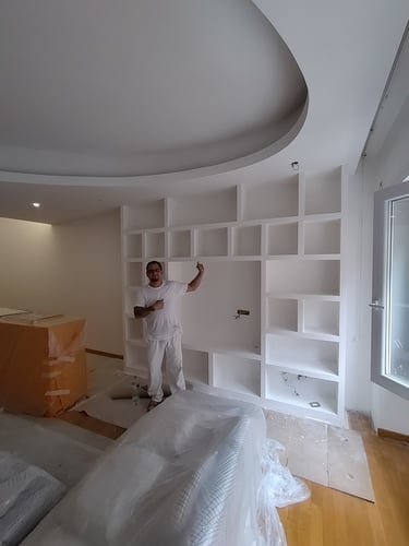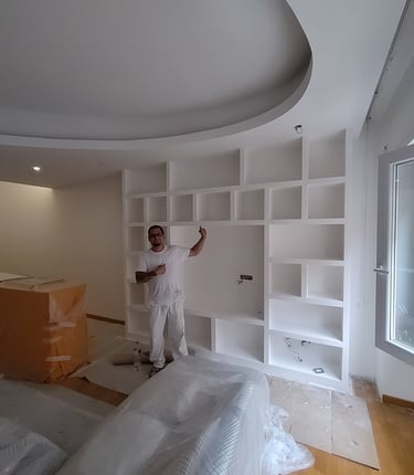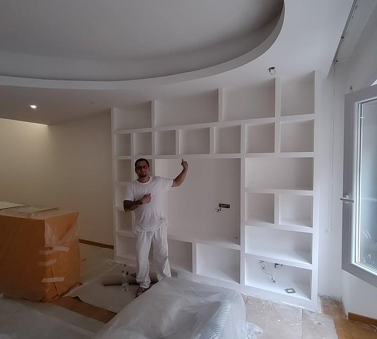 Siamo un team giovane e dinamico a Roma, specializzato in ristrutturazioni per privati e piccole aziende, tra cui case, bagni, negozi e uffici. Realizziamo lavori in cartongesso di alta qualità, dai classici controsoffitti e pareti alle strutture su misura come armadi, desk di accoglienza, mensole e soggiorni. Ogni progetto è curato nei dettagli, combinando funzionalità, estetica e materiali di qualità per trasformare ogni ambiente secondo le esigenze dei nostri clienti.